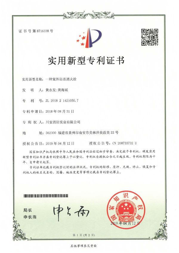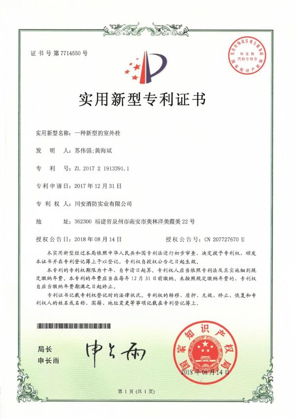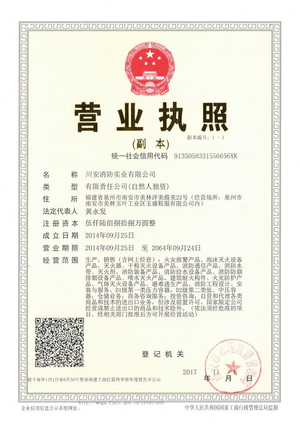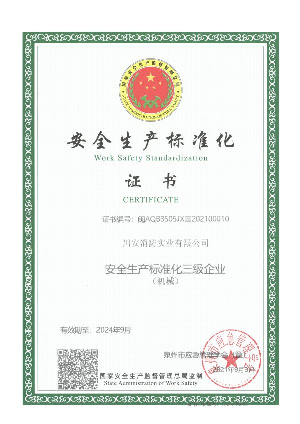 風(fēng)雨歷程,銳意進(jìn)取,敢為人先。川安消防實(shí)業(yè)有限公司創(chuàng)建于2012年,位于福建東南沿海著名僑鄉(xiāng)泉州市南安,是一家集”研發(fā)、生產(chǎn)、銷售、服務(wù)”為一體的消防設(shè)備產(chǎn)品專業(yè)生產(chǎn)企業(yè),以“用產(chǎn)品和服務(wù)為用戶創(chuàng)造價(jià)值”的經(jīng)營(yíng)理念,公司緊跟先進(jìn)制造和檢測(cè)技術(shù)發(fā)展方向,不斷開展技術(shù)創(chuàng)新,追求高質(zhì)量品質(zhì)、為客戶提供優(yōu)質(zhì)的產(chǎn)品和服務(wù)。